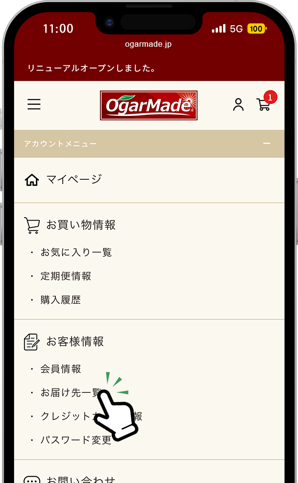 マイページにログインして、「お届け先一覧」をタップします。