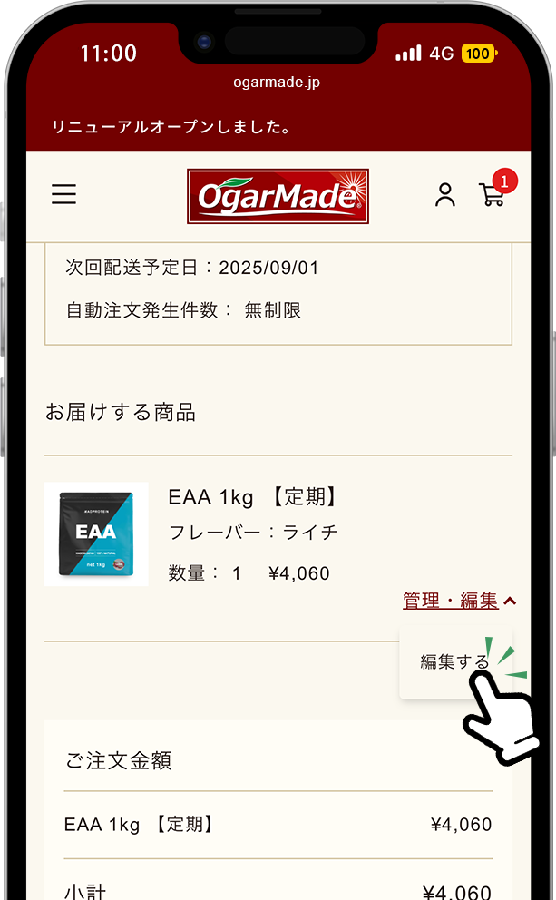※初回分のご注文内容は変更できませんので、あらかじめご了承ください。