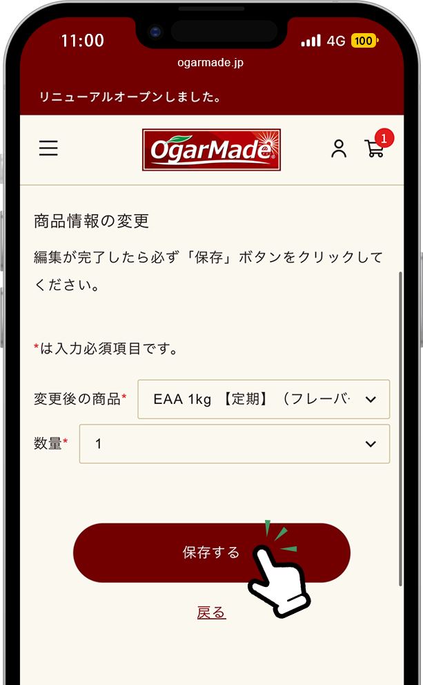 ご希望のフレーバー、数量に変更後、必ず「保存する」をタップしてください。