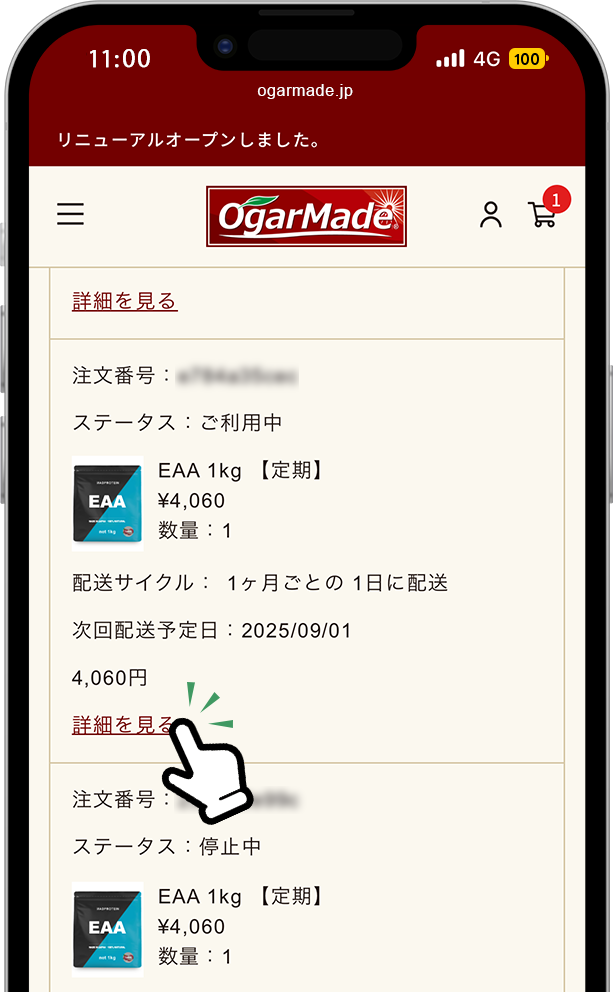 「定期便情報」から、変更したい定期便の「詳細を見る」をタップし開きます。