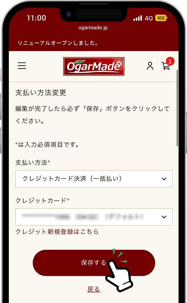 STEP01で追加したカード情報を選択し、保存してください。