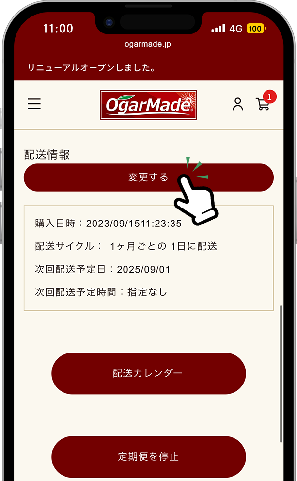 ※「次回配送予定日」の変更は、定期便全体の配送サイクルには影響いたしません。