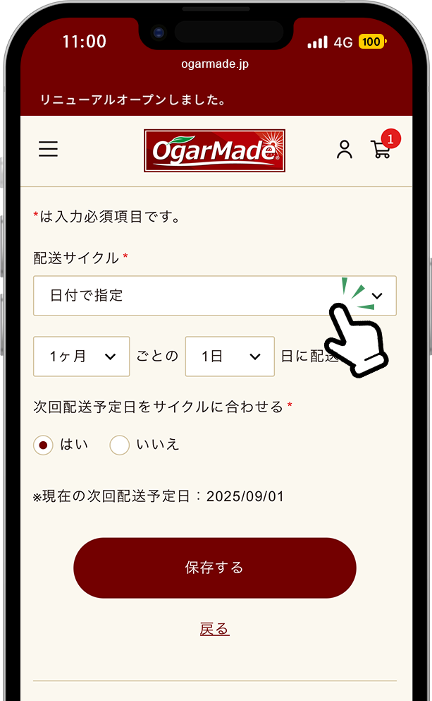 1ヶ月ごとの1日に配送を選択