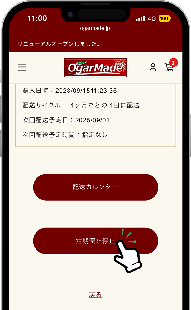 なお、定期便の再開をご希望の場合は、再度新規でご注文いただく必要がございますので、あらかじめご了承ください。